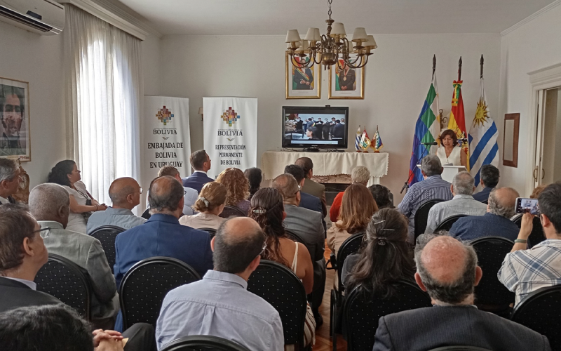 En la Embajada de Bolivia se llevó a cabo el Acto de conmemoración al 15 Aniversario de la Fundación del Estado Plurinacional de Bolivia. Al mismo asistió la comunidad boliviana residente en Uruguay, el cuerpo diplomático; y representantes de organismos internacionales, organizaciones sociales.