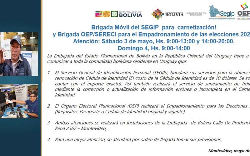 ¡Atención bolivianas y bolivianos residentes en Uruguay!