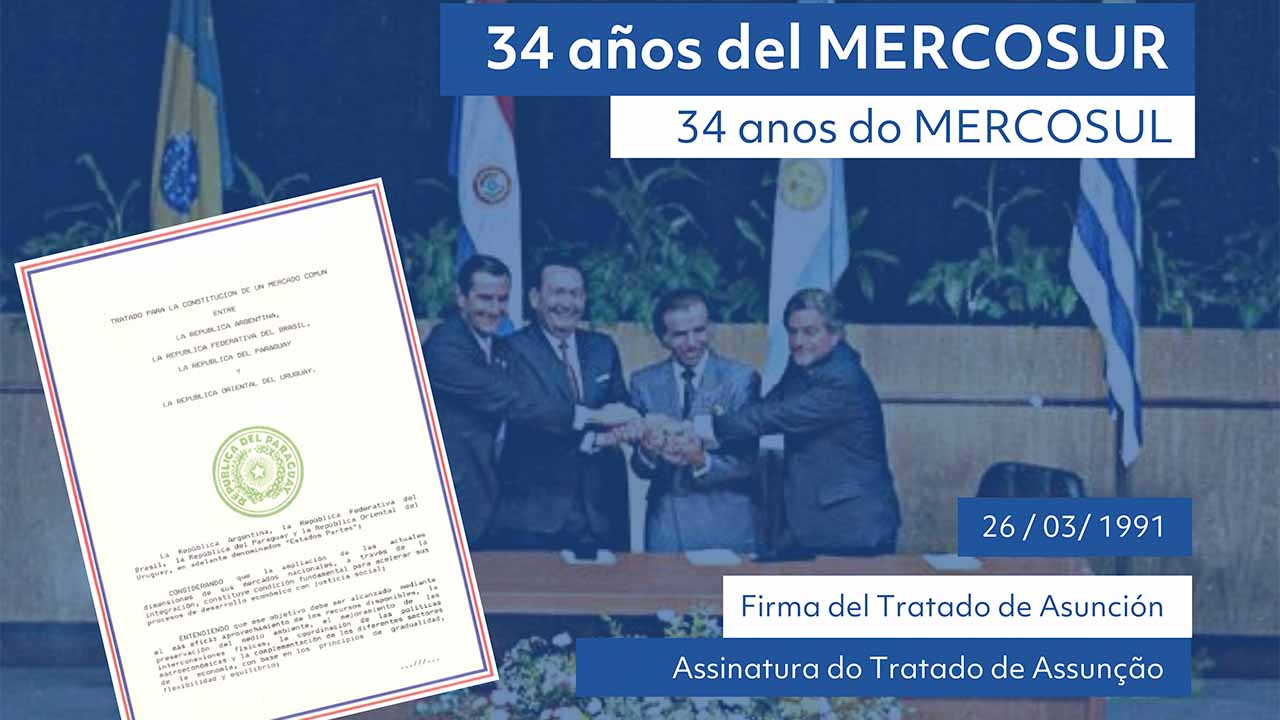 MERCOSUR celebra 34 años conmemorando hoy la histórica firma del Tratado de Asunción